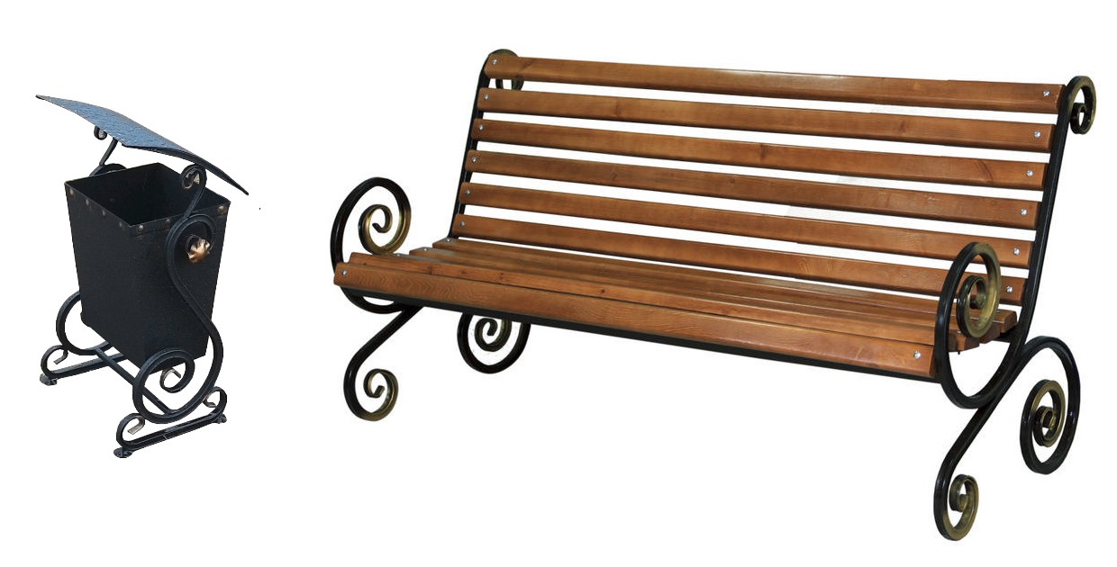 В комплект входит скамейка "Французская лоза малый вензель." и Урна Проспект