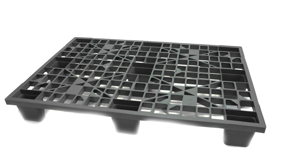 Паллет пластиковый поддон 1200х 800х160 перфорированый на ножках (ЧЕРНЫЙ) в Краснокаменске