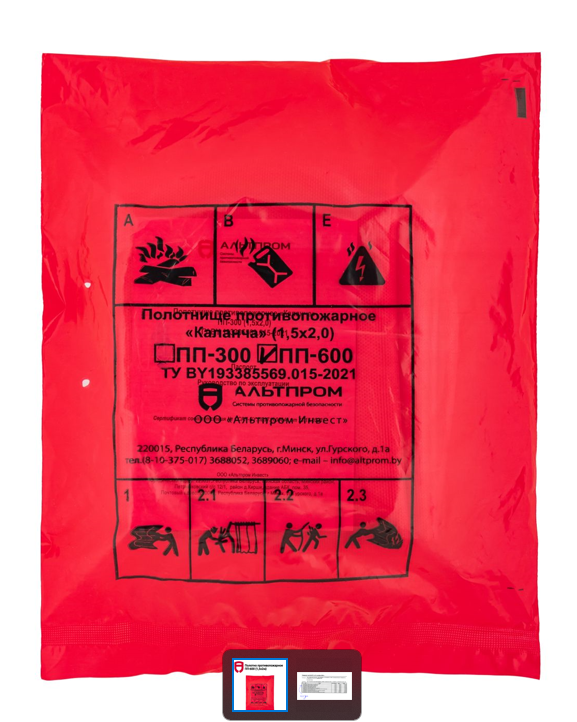 Может использоваться как накидка для накрытия места возгорания с целью прекращения доступа воздуха к открытому огню -