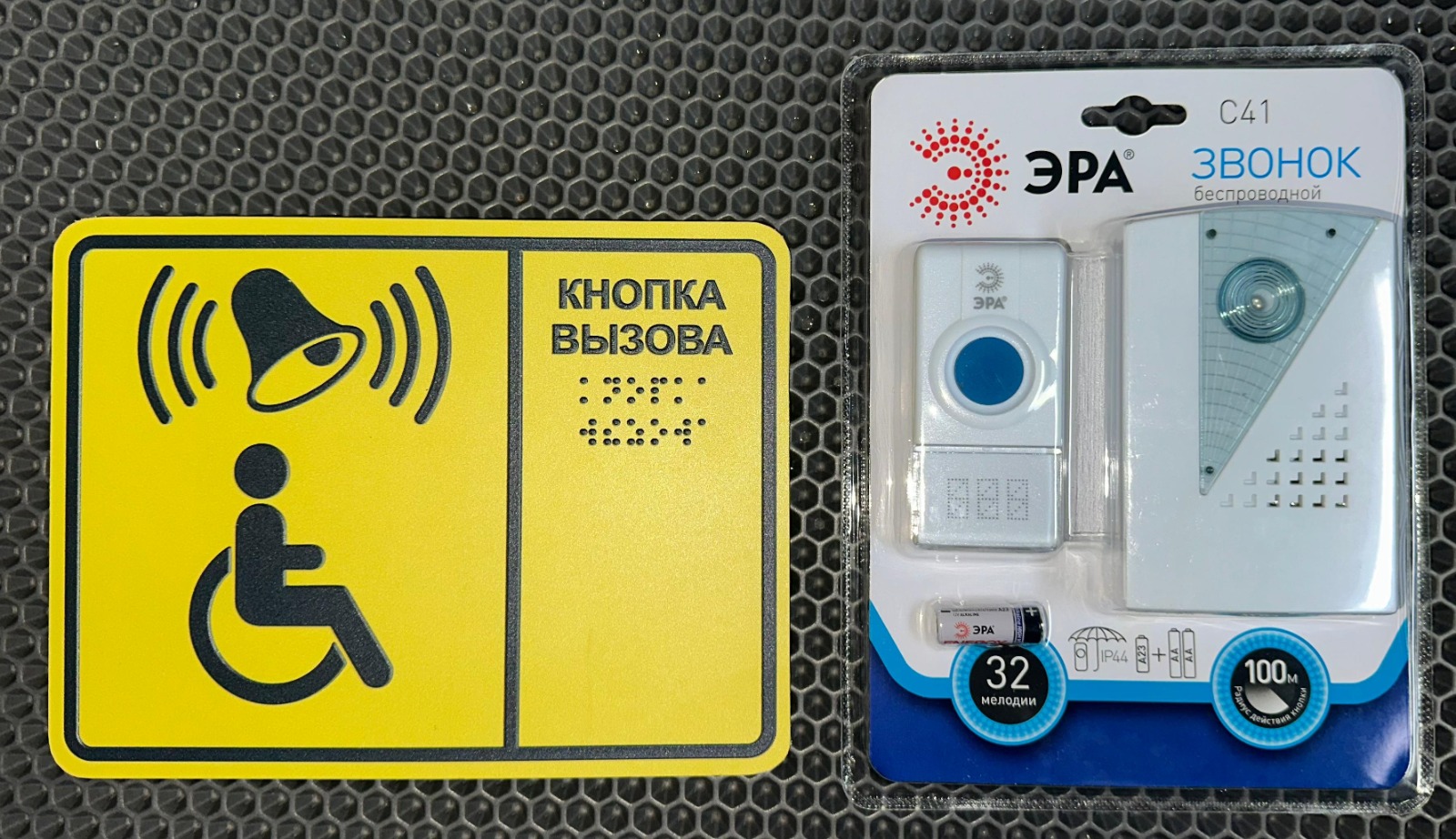 Комплект: табличка + кнопка вызова с приемником.